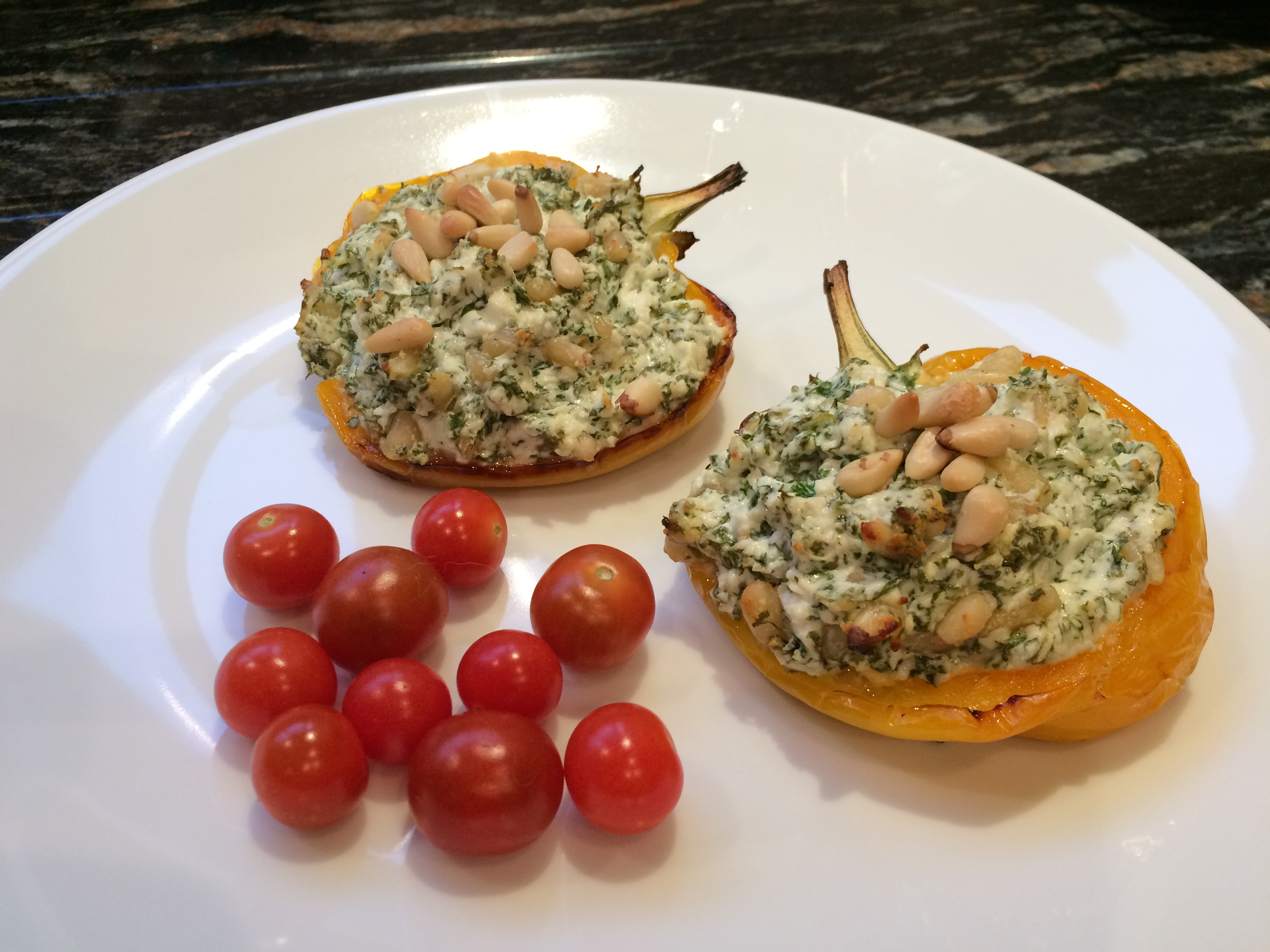 I have stuffed peppers before but this recipe is from The Medicinal Chef by Dale Pinnock and he definitely has got the mix right with soft goat’s cheese, loads of fresh herbs and that splash of lemon juice. I do admit to adding a few more pine nuts as they are my favourite nut.