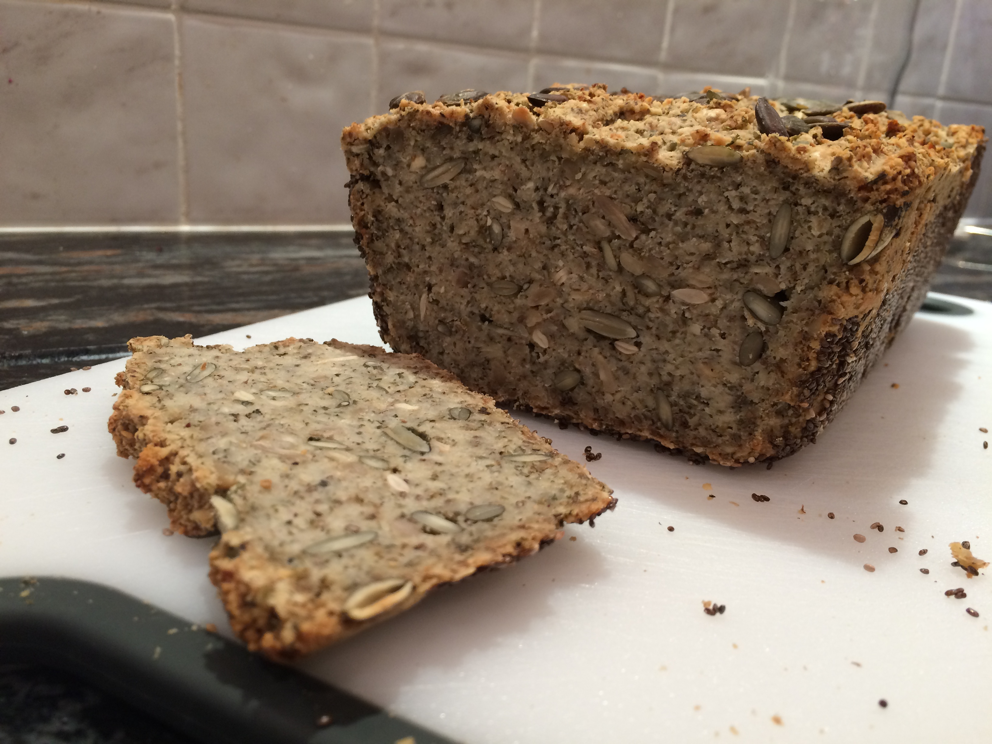 Don’t try to substitute psyllium husk powder as this holds the loaf together. The powder is available in health-food shops or online.