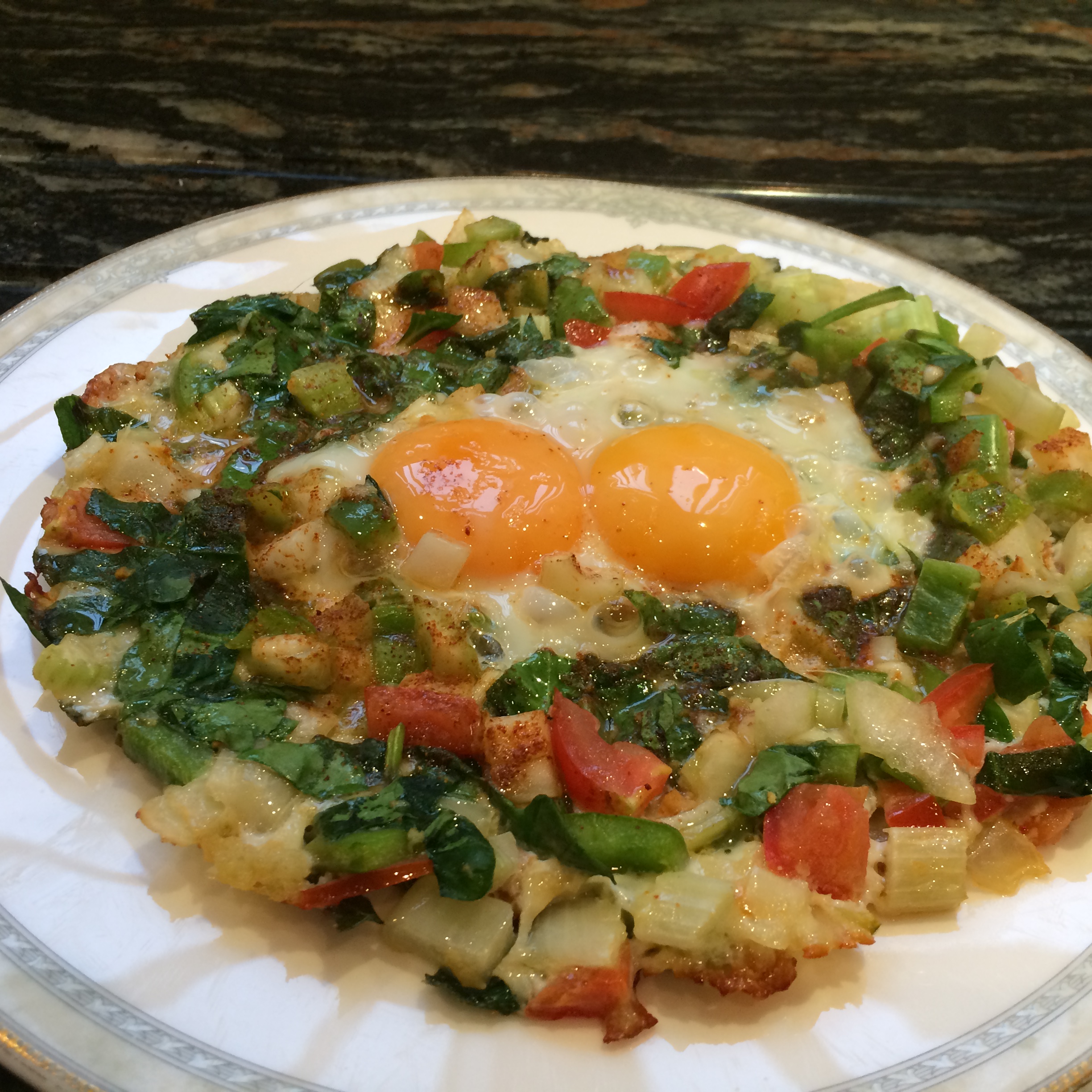Gently cook for about 15 minutes until eggs are set to your liking. By this time, the vegetables will also be nicely cooked.