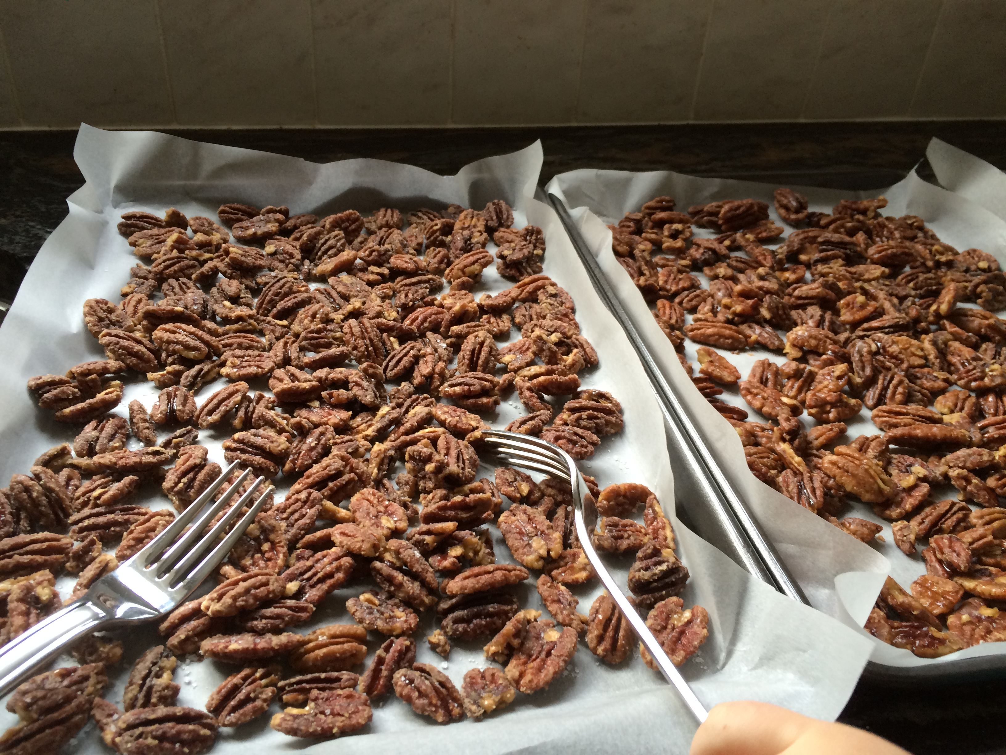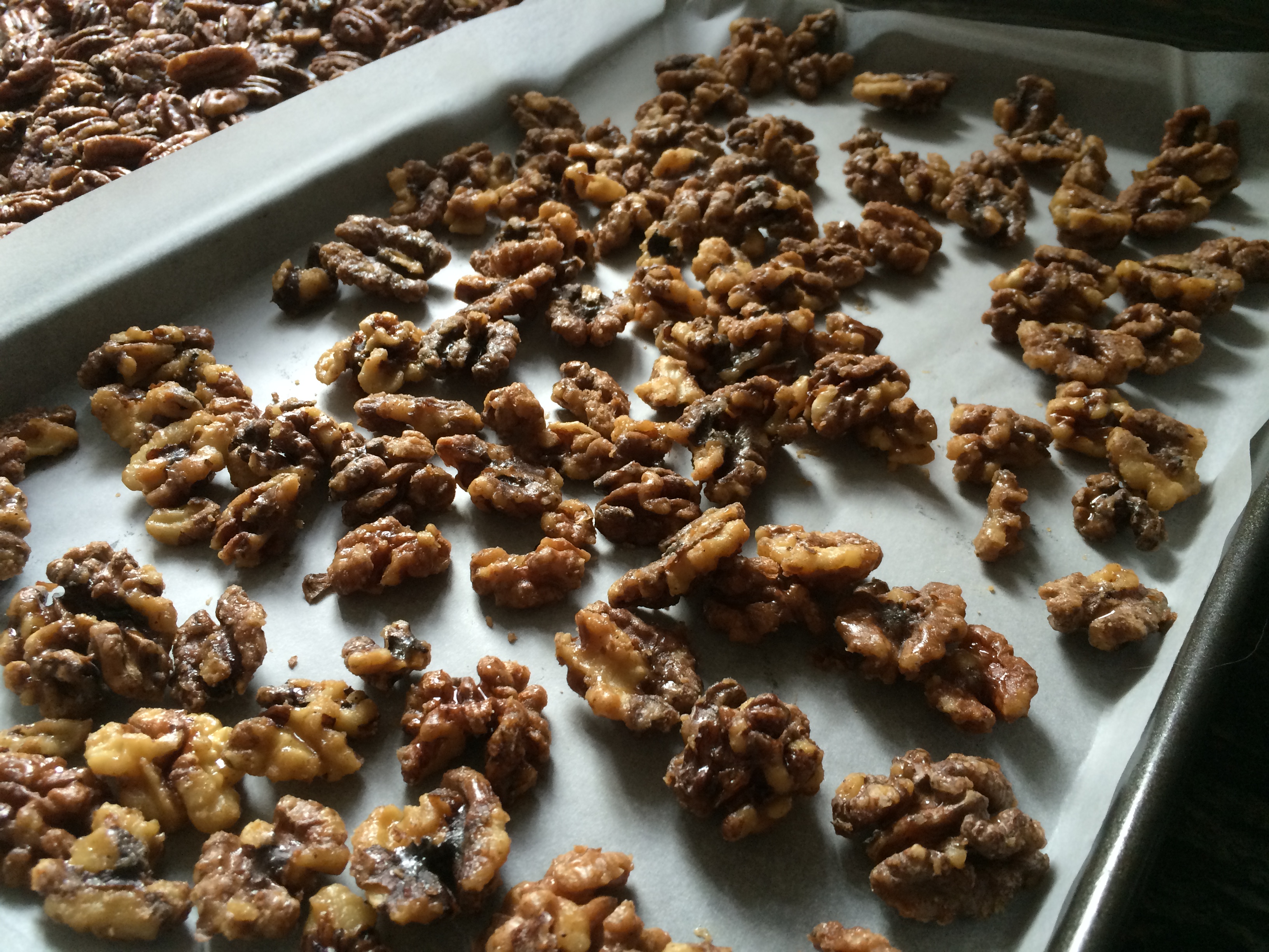 This year I have made ordinary candied pecans, salty candied pecans and candied walnuts.