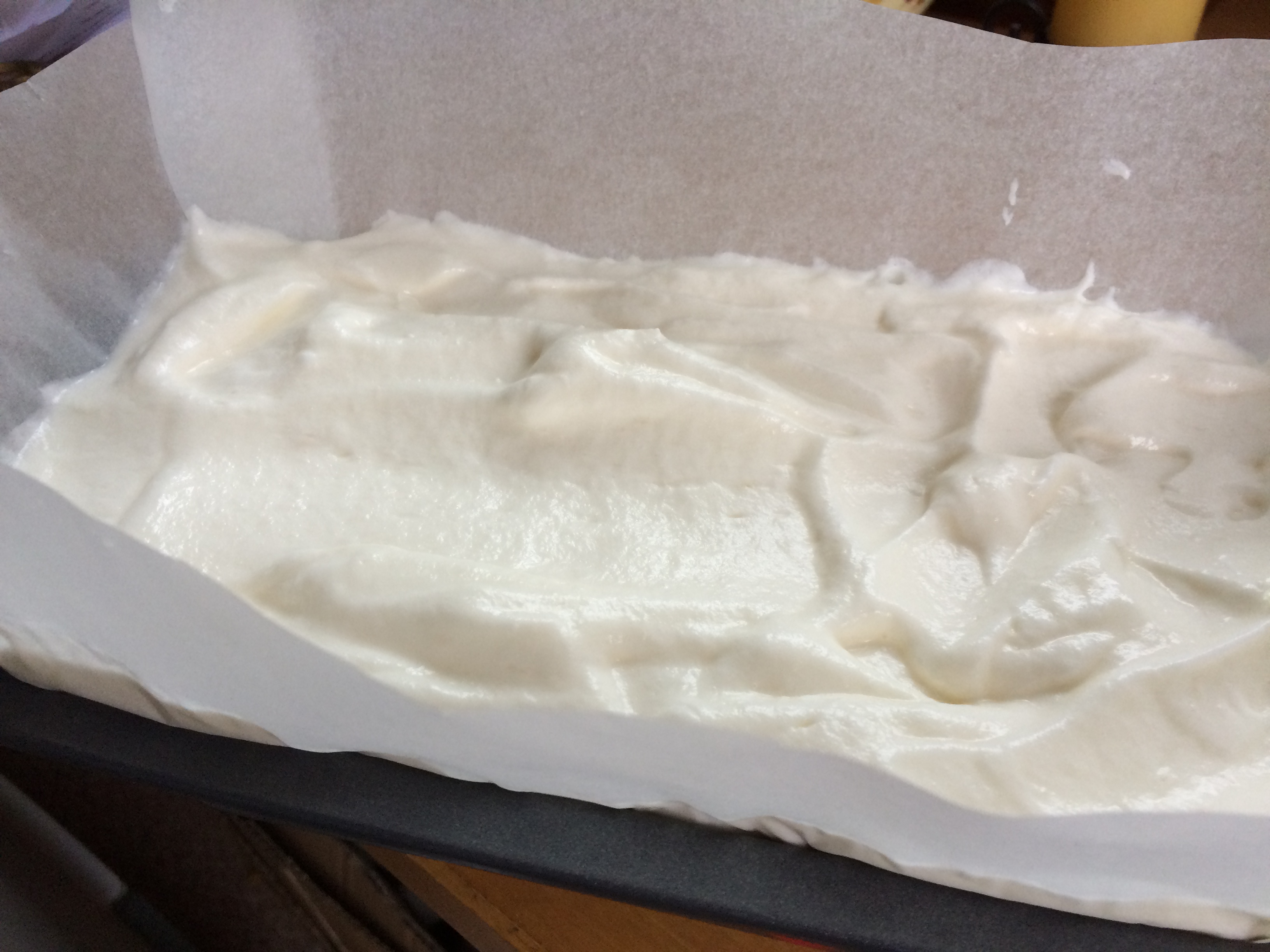 Freeze for at least four hours until firm (preferably overnight). I found this was an extremely light mix and it was easier to open freeze it, then carefully fold over the parchment paper and cover in foil for storage.