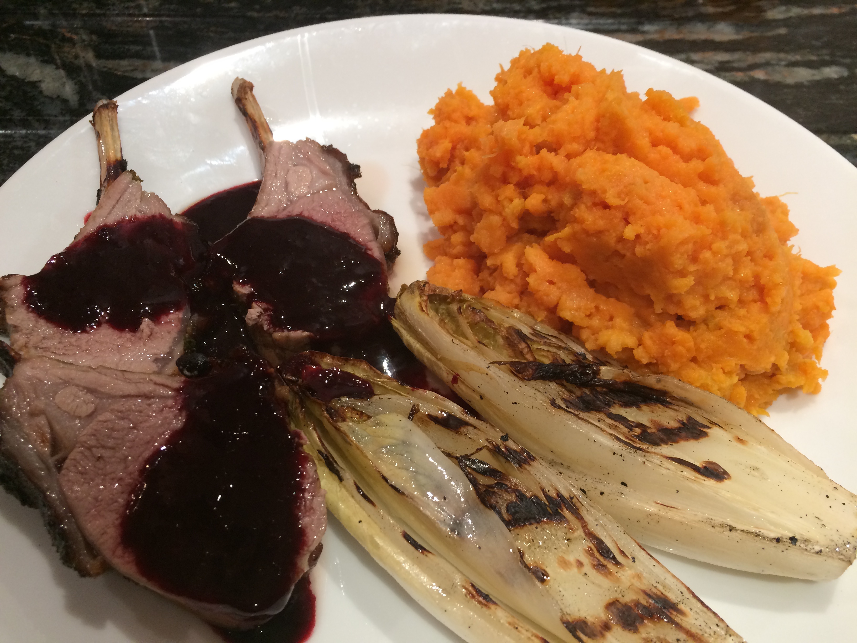 Rack of lamb with sweet potato mash and charred chicory – well done – a little overdone for most people.