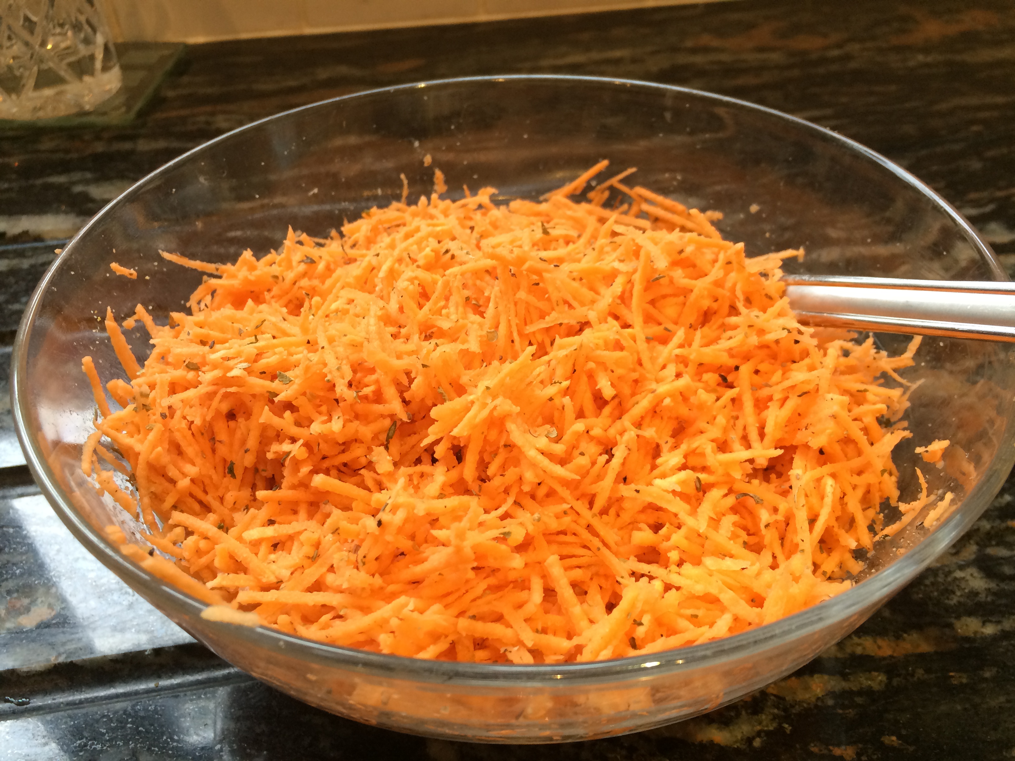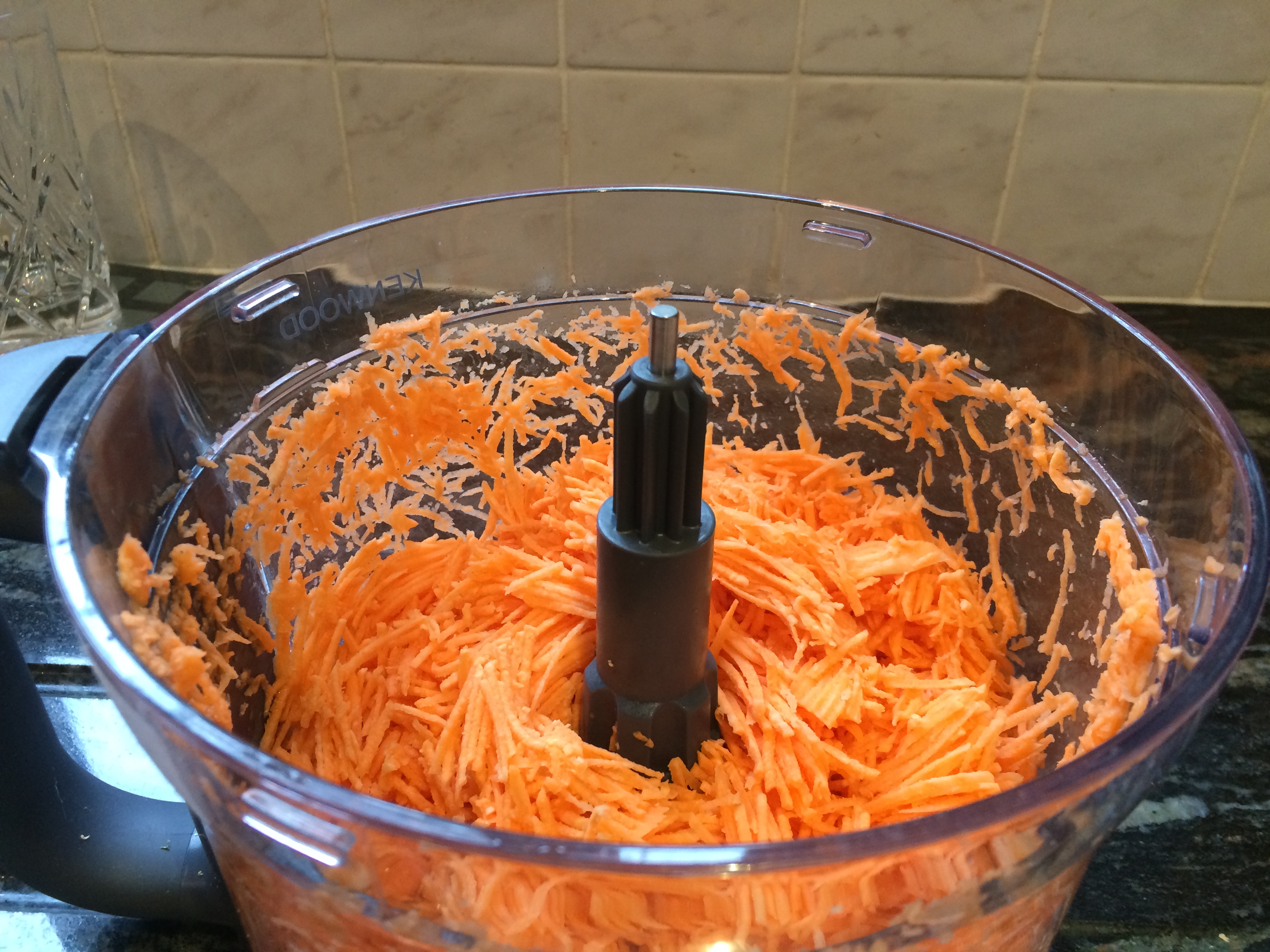 Either grate the sweet potato (or yam) by hand or put through a food processor.