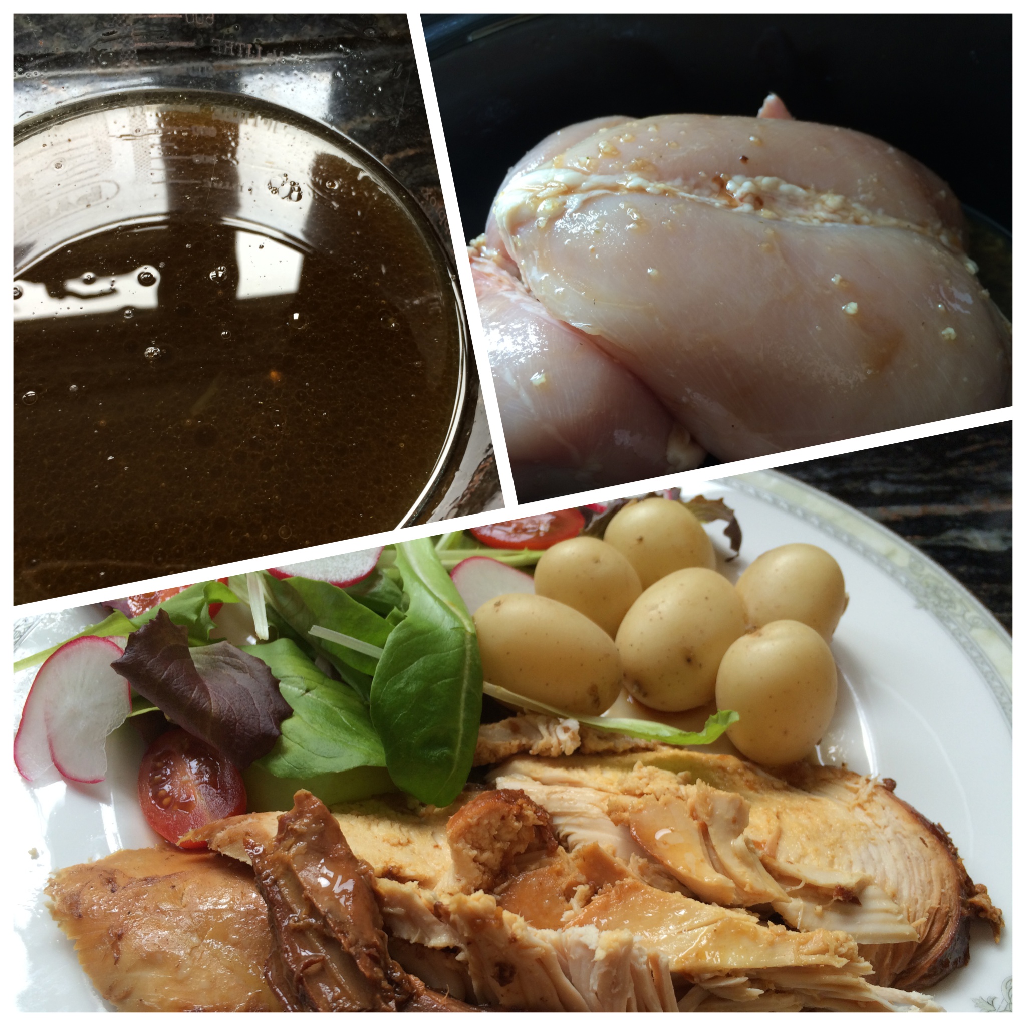 Although I am not a huge fan of slow cookers, this chicken cooked beautifully and the tantalizing aroma filling the kitchen all day made us extremely hungry by early evening. Moist, succulent, well-flavoured chicken with a truly tasty sauce which I drizzled on the carved meat. I served the chicken with baby new potatoes and a simple light salad and will definitely be cooking it again.