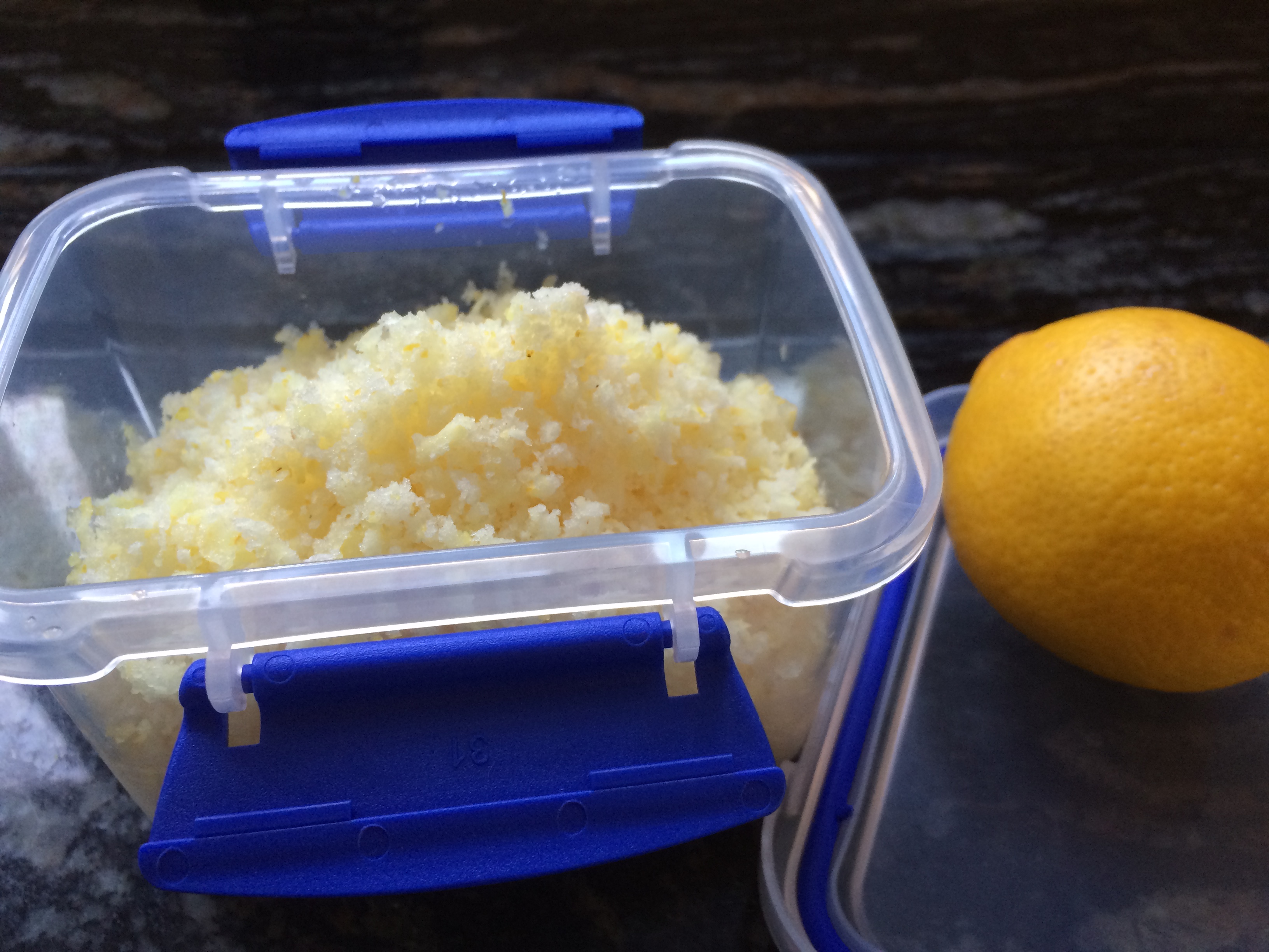 *I used my lemon ‘granules‘ straight from the freezer in place of the zest and juice. About three heaped tablespoons in the casserole, and 2 tablespoons for the topping.