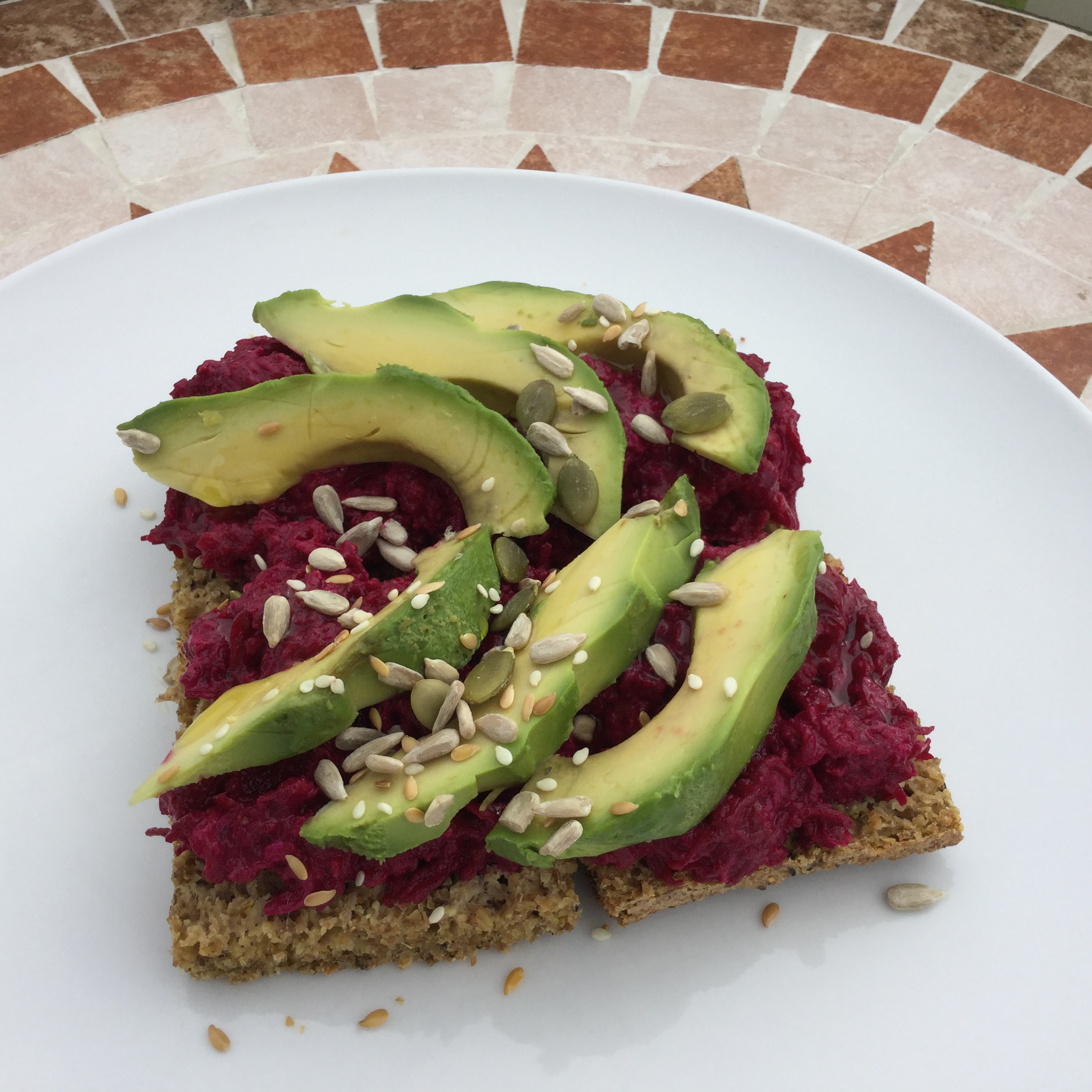 I had fresh beetroot to hand; always have avocados in the kitchen and whilst I didn’t have houmous, I did have chickpeas so quickly knocked up a batch with some lemon juice, olive oil, garlic and tahini. As I only needed a teaspoonful, that left me plenty for using another time. The recipe called for cottage cheese but as I had a small amount of cream cheese languishing in the fridge, I decided that this would serve just as well.
