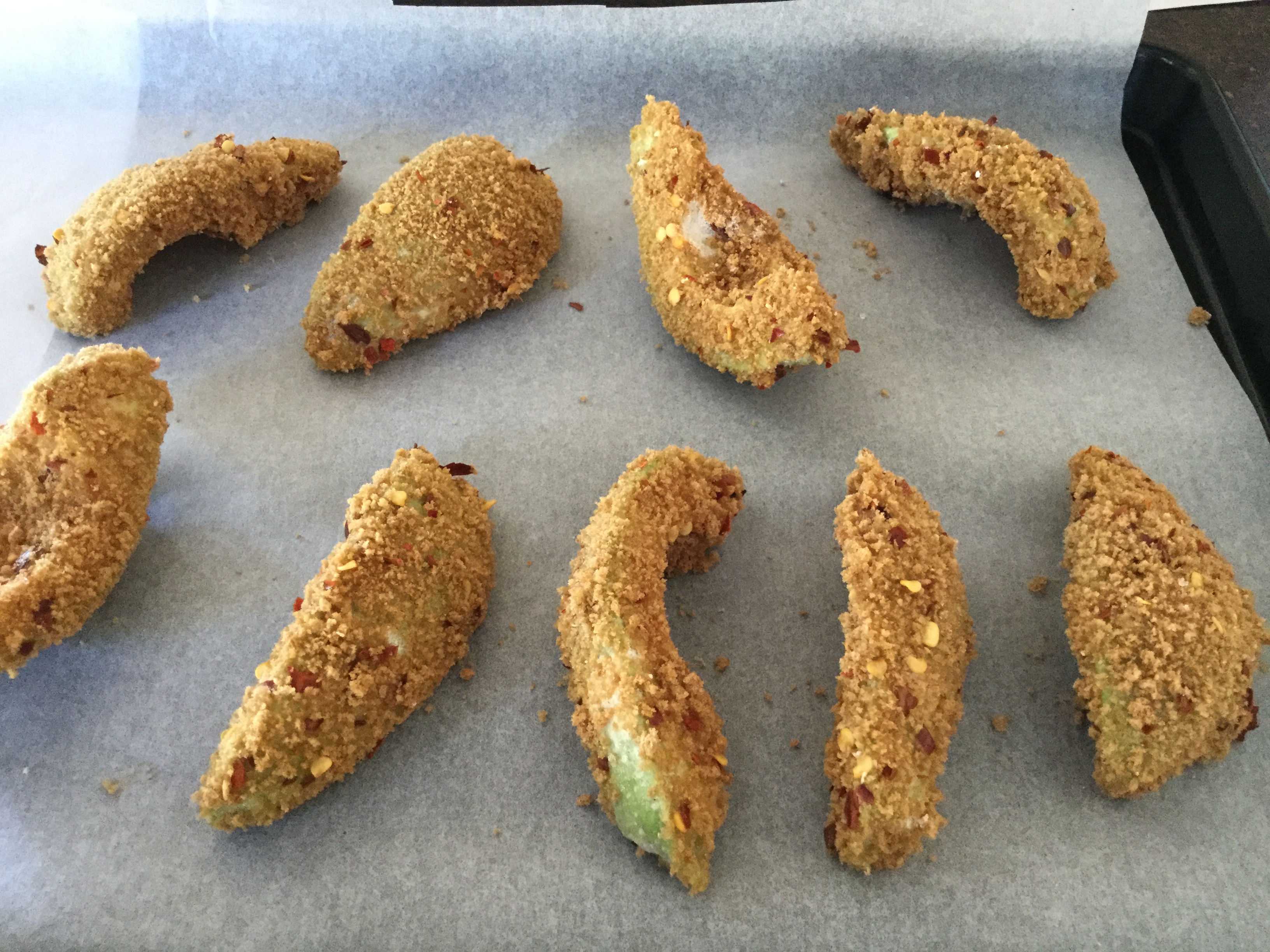 I didn’t spray them with oil as the original recipe mentioned and they turned out beautifully; soft creamy avocado with a crisp outer shell. The chilli flakes gave them an extra kick so if you don’t like things too hot, leave these out as the Sriracha and yoghurt make a tasty dip. Another winning recipe to make again.