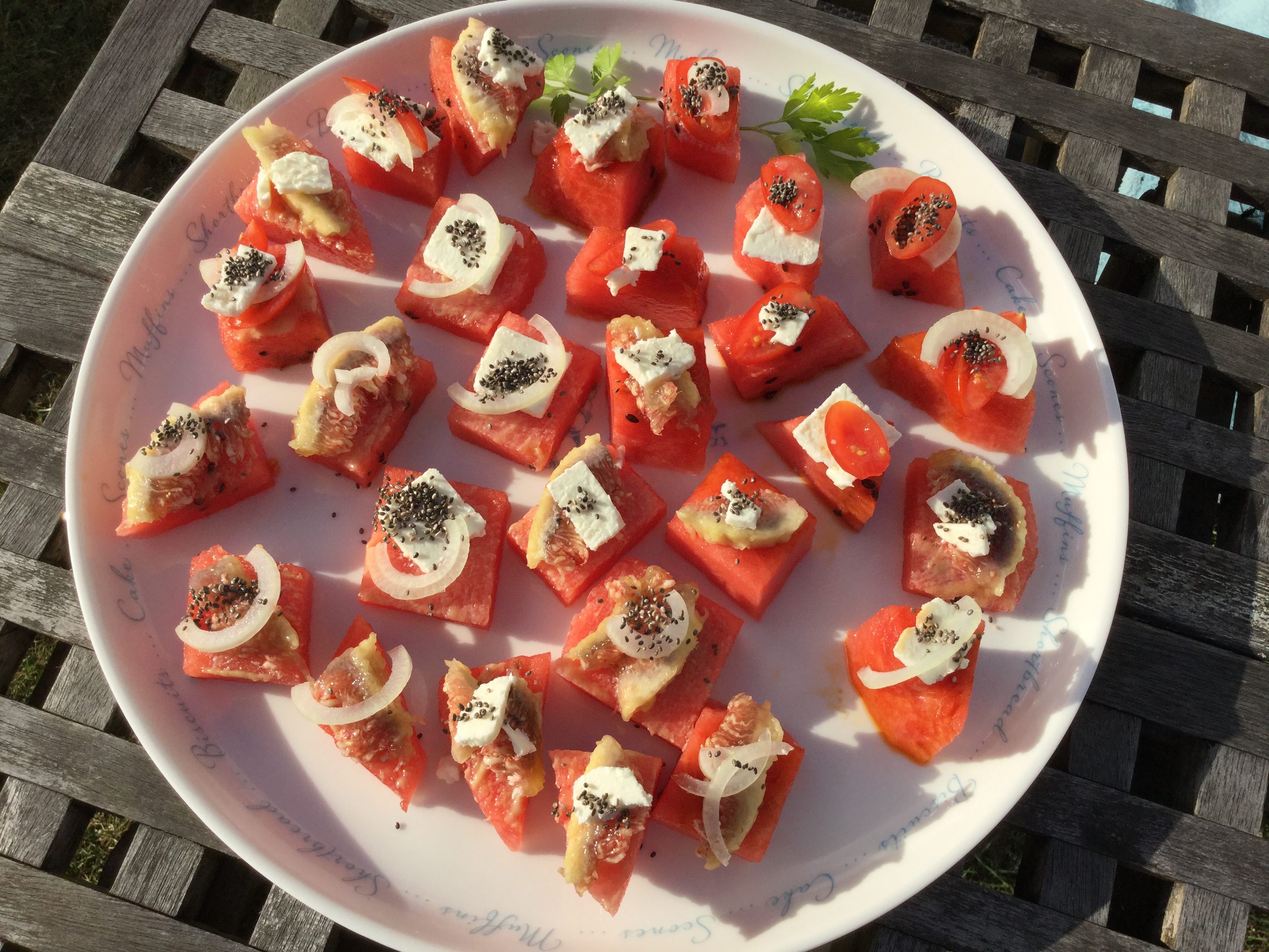 The very next evening, after a sizzling day spent on the beach, I was going to slice up the watermelon to eat when I remembered bookmarking the Minimalist Baker’s take on Sashimi and I decided to try it out using the figs and some bits and bobs I had in my fridge and cupboards.