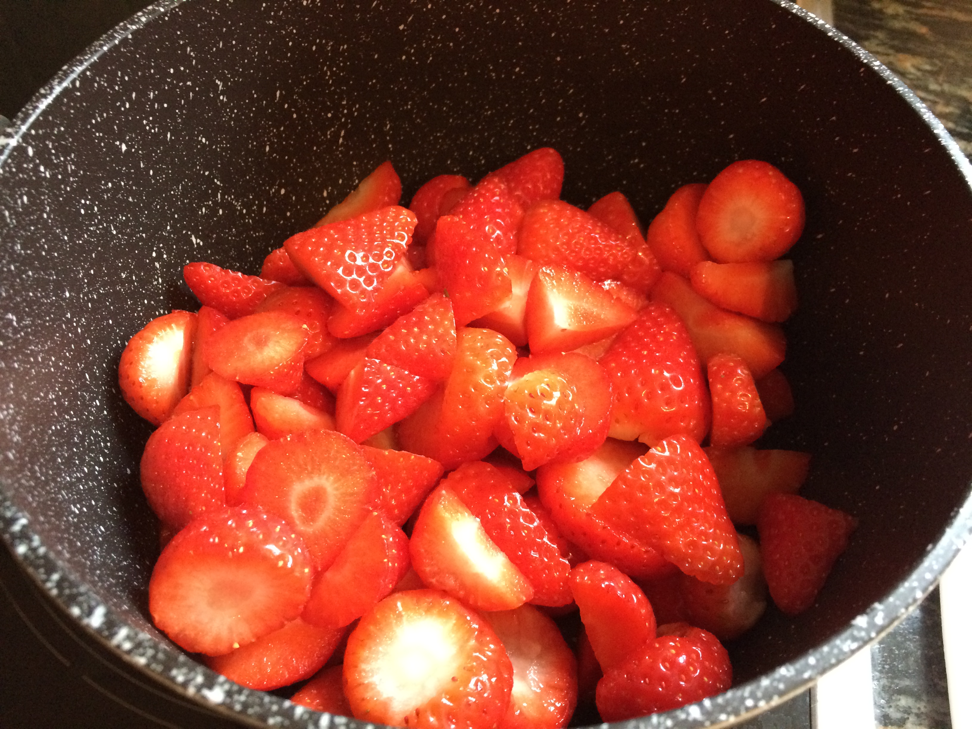 Hull the strawberries, quarter if large, and place in a large saucepan with the honey.
