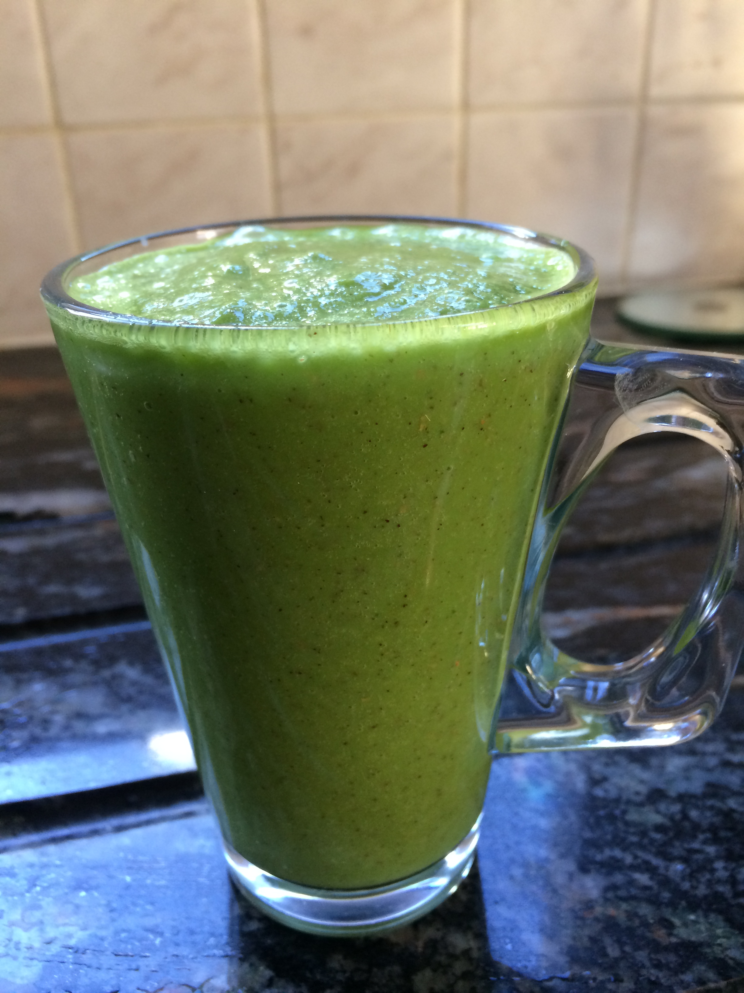 Place all ingredients into a Nutribullet or similar. Add coconut water (about 1 cup) and blitz for 1 minute. If too thick, add a little more coconut water.
