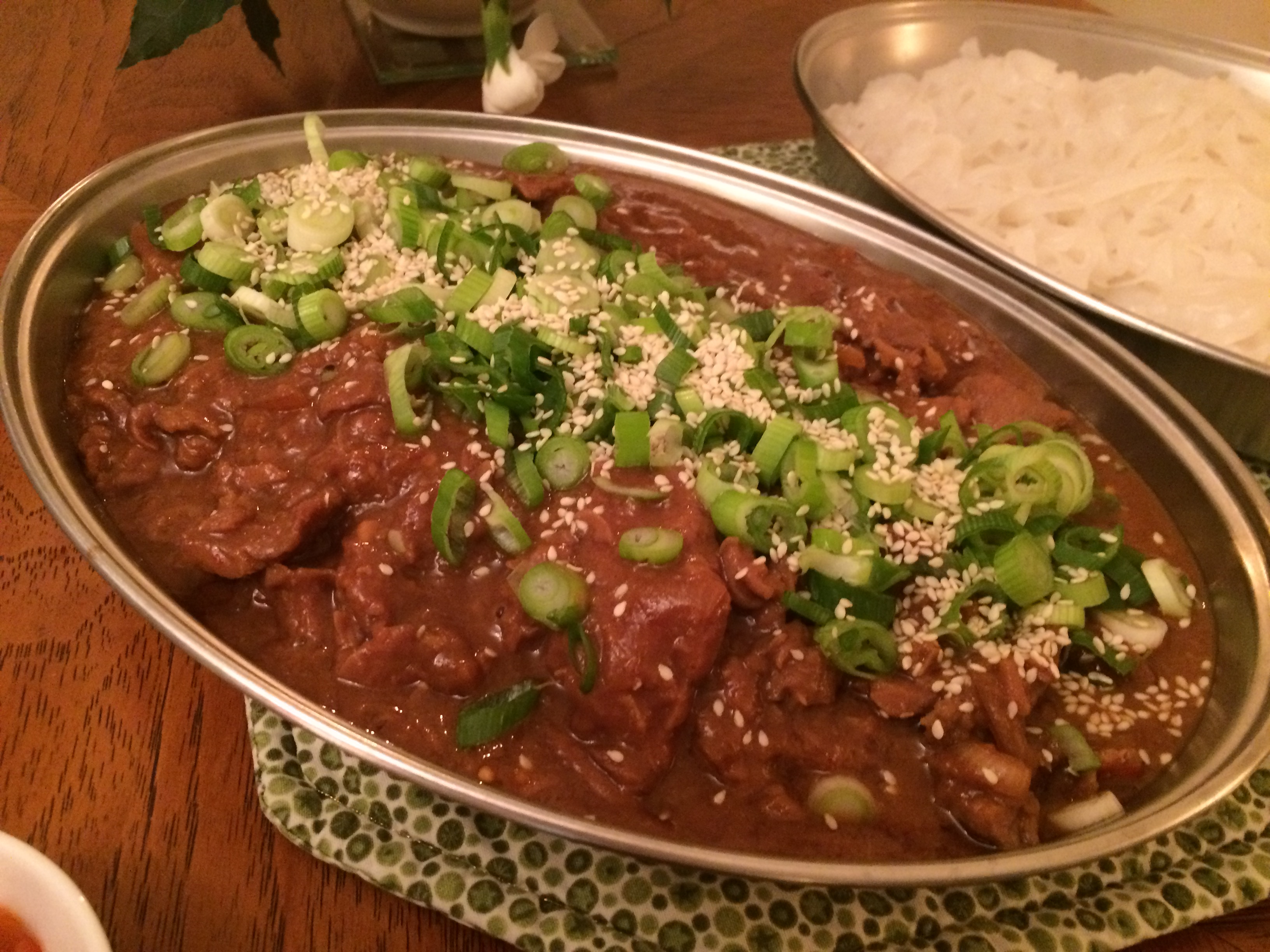 The beef was melt-in-the-mouth tender and I served it with rice noodles and Kimchi (a traditional fermented Korean side dish made of vegetables with a variety of seasonings) which was available at my local supermarket.
