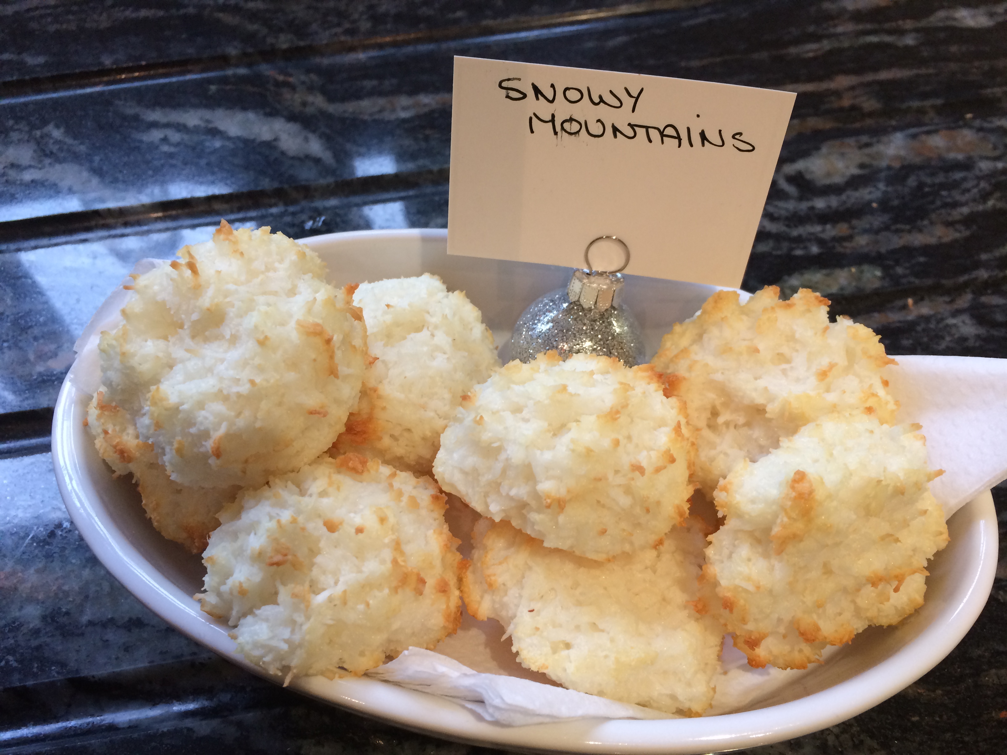 I was watching my grandchildren play with the ‘magic’ snow I had bought to keep them amused, when it suddenly reminded me of delicious little cakes I used to have as a child. We always called them Snowy Mountains and they were cooked on rice paper which I loved to eat.