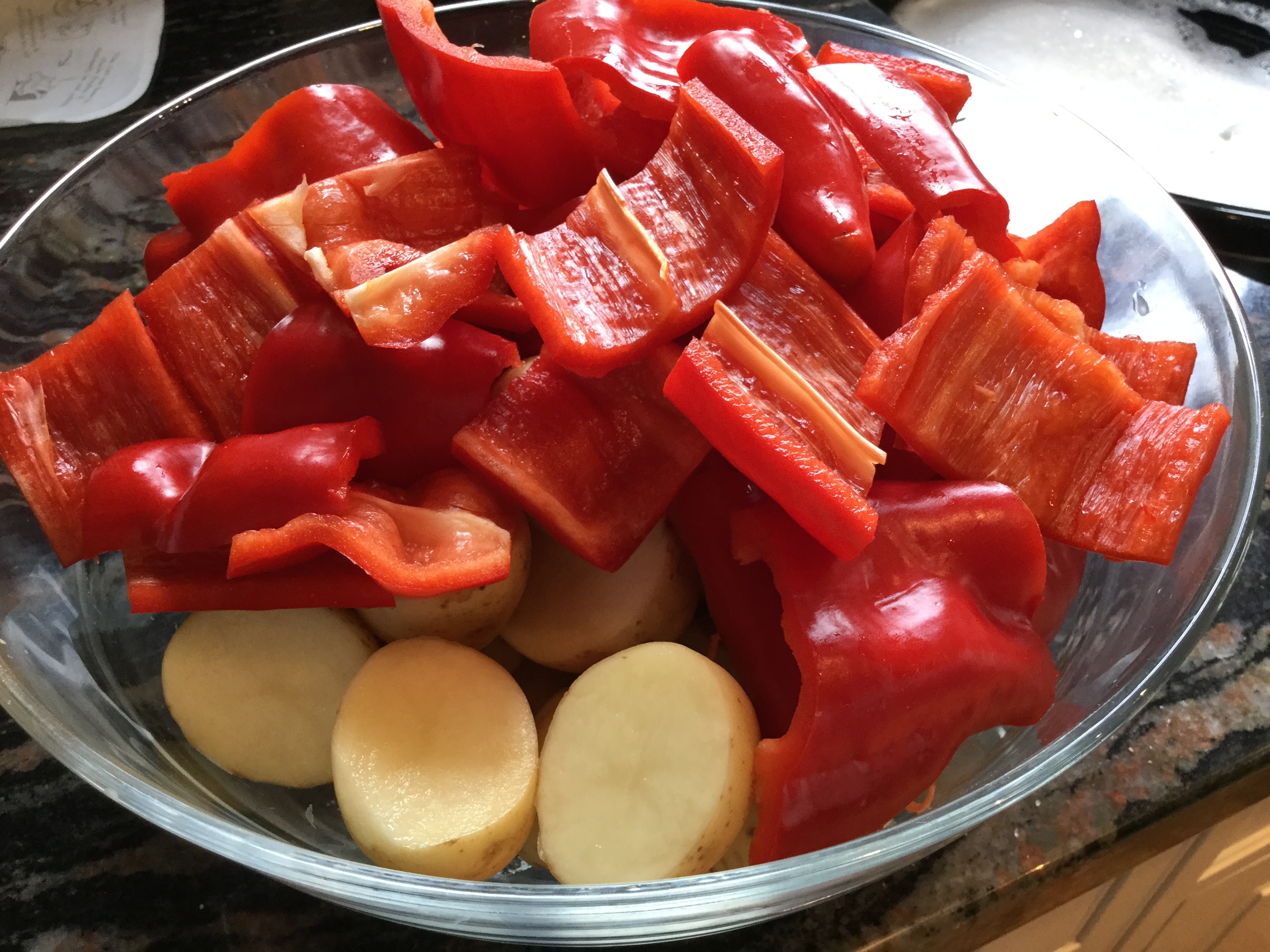 3 sweet pointed peppers, halved, de-seeded and cut into chunks