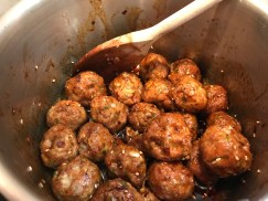 When the meatballs are cooked, tip them into the sauce and gently toss until they are completely covered.