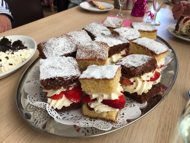 Not something we have often but made especially for my friends by the chef at the garden centre.Firstly I cannot praise the garden centre enough as they made the afternoon absolutely wonderful, sectioning off the best bit of the restaurant for us and the chef cooked some delicious fresh cream and strawberry cakes and there was plenty of bubbly on the tables. I felt very honoured to have more than 40 Newbie friends turn up to share my birthday with me, and I believe everyone really enjoyed themselves. The chef even made some fresh cream gluten-free cakes for my husband who was overjoyed.